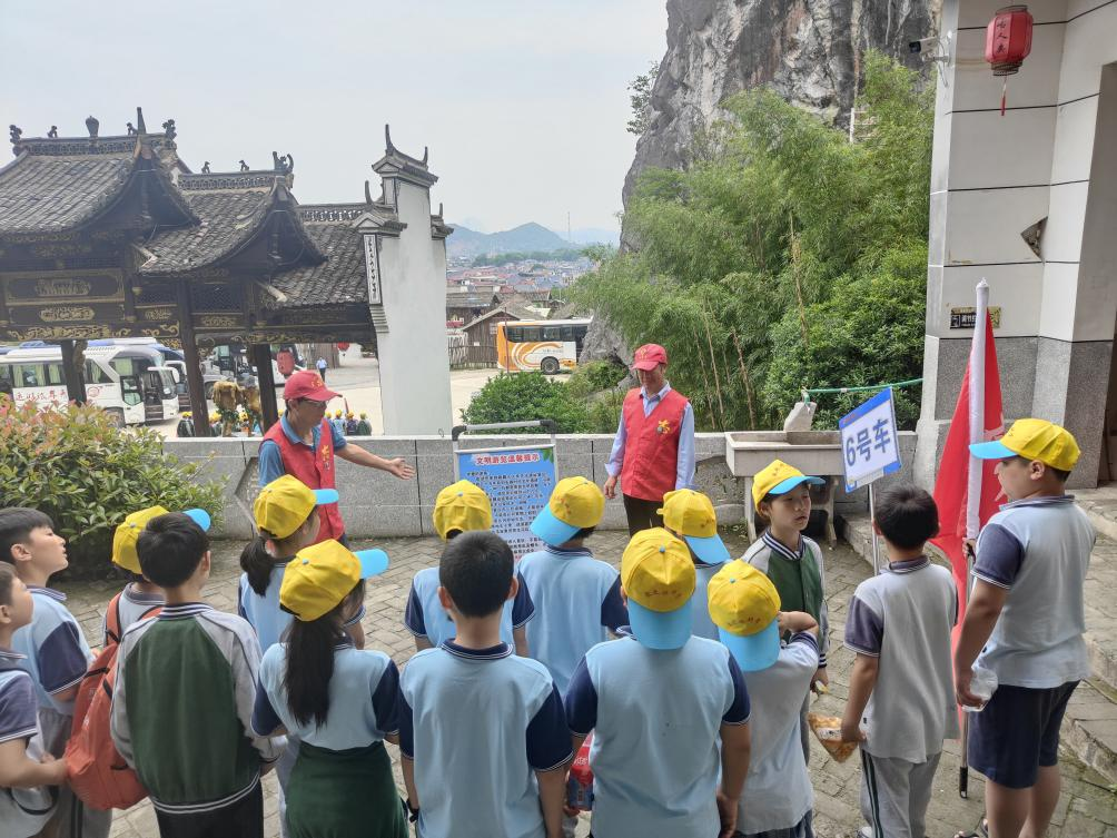 活动现场,斑驳的古人类遗址与珍贵文物静静诉说着岁月故事。志愿者们化身“历史讲解员”,志愿者们结合景区内的古人类遗址及珍贵文物,为学生们深入浅出地阐释保护文物遗产的重要性。通过生动讲述并以互动形式,让学生们深刻认识到文物是历史的鲜活见证,承载着民族的记忆与智慧。在沉浸式的学习体验中,文明旅游与文物保护的理念如春风化雨般浸润心田,不仅拓宽了学生们的文化视野,更在他们心中播下了文明旅游、守护文物的种子,引导其以实际行动践行文明旅游公约,成为传统文化的守护者与传播者。